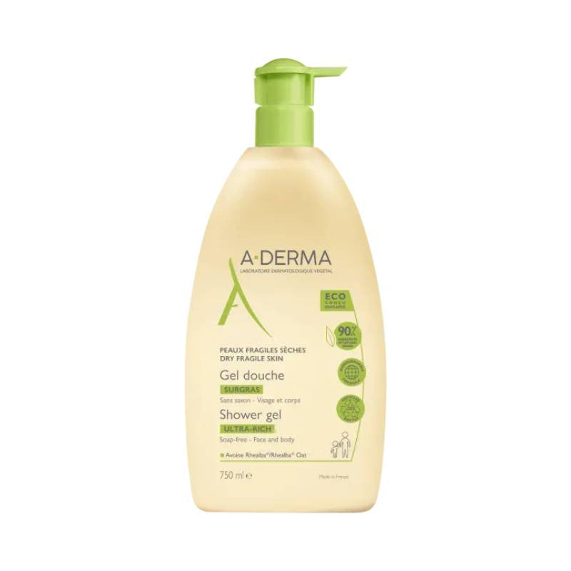 A-Derma Gel Duche Ultra-Rico para a pele seca e frágil limpa suavemente, protege e nutre.