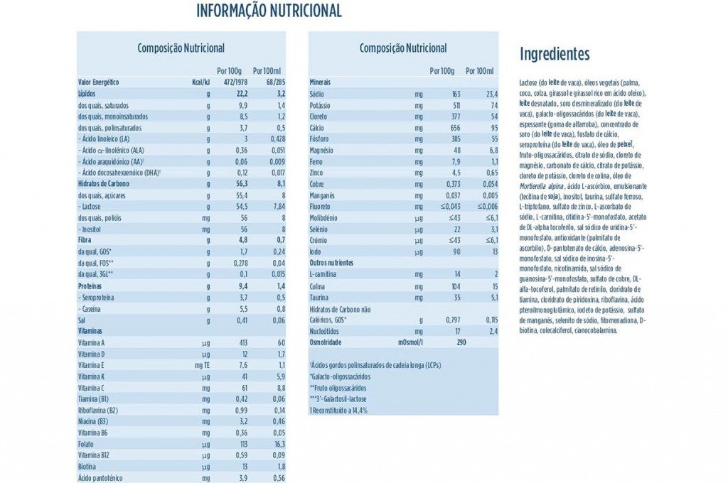 Deve ser consumido sob supervisão médica (após consideração de todas as opções de alimentação disponíveis incluindo a alimentação com leite materno).