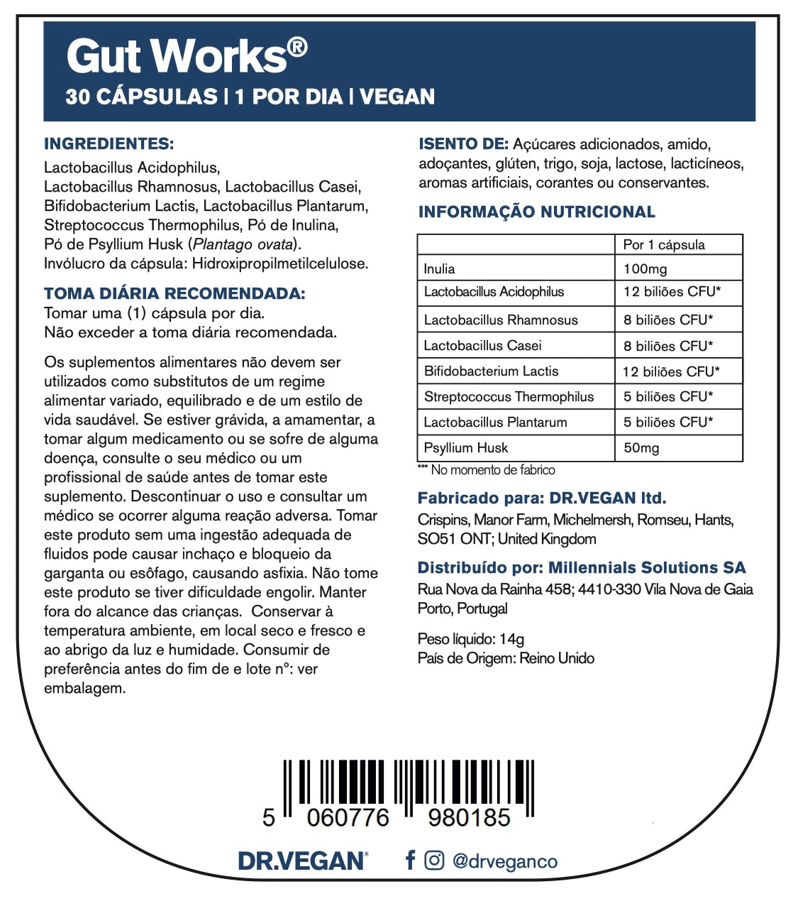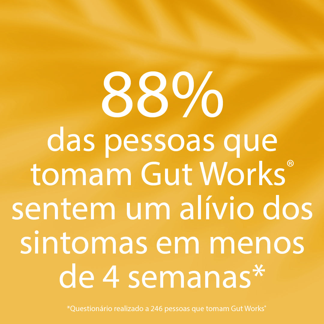 FÓRMULA ÓTIMA: O Gut Works® é uma fórmula avançada de bactérias benéficas ao intestino clinicamente estudadas (também conhecidas como 'probióticos'), fornecendo suporte diário para o intestino, digestão e saúde imunológica, além de aliviar os sintomas da SII.