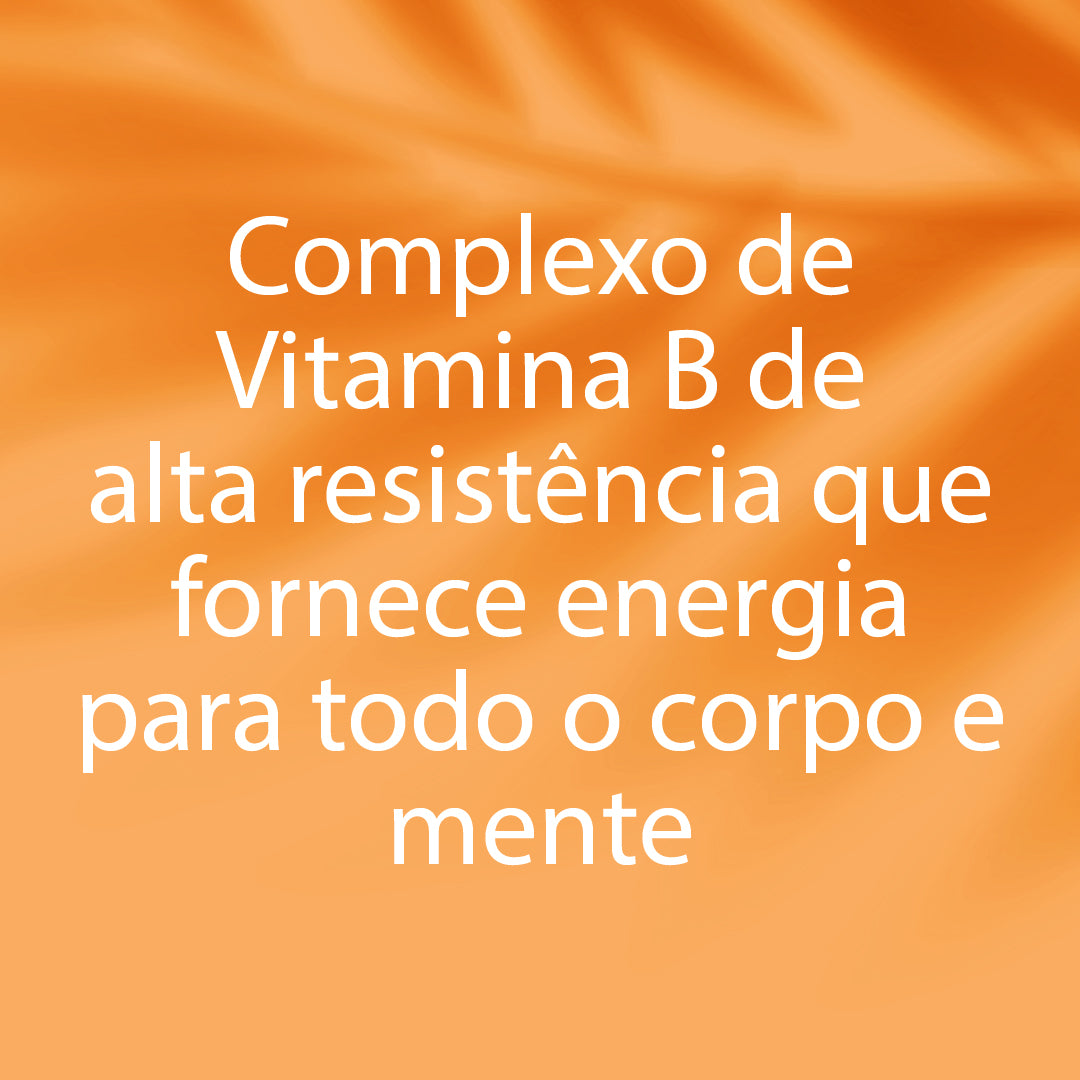 VITAMINAS B: Inclui vitamina B1 (50mg), vitamina B2 (50mg), vitamina B3 (50mg), vitamina B5 (50mg), vitamina B6 (25mg), vitamina B12 (100ug), colina (50mg), biotina (50ug), Folato (200ug) e Inositol.