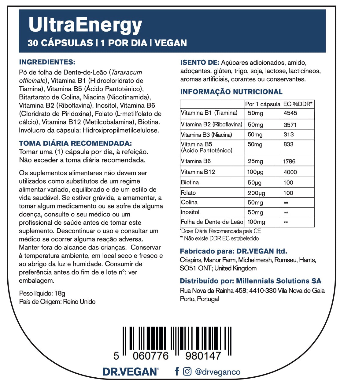 LIVRE DE ALERGÊNIOS: O UltraEnergy é 100% vegano, livre de quaisquer aditivos, toxinas, ingredientes de origem animal, alergénios, glúten, laticínios, trigo, lactose, açúcar e amido, e é adequada para todas as dietas.