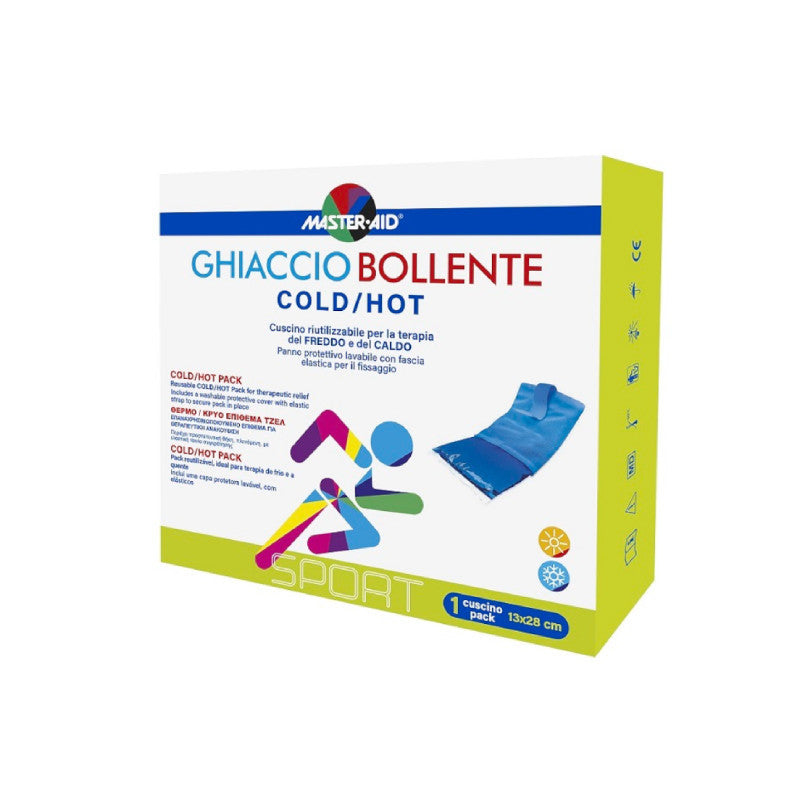 Masteraid Sport Cold/Hot 13x28cm é uma almofada que contém propileno de glicol, carboximetilcelulose, corante e água. Funciona em 2 terapias:
