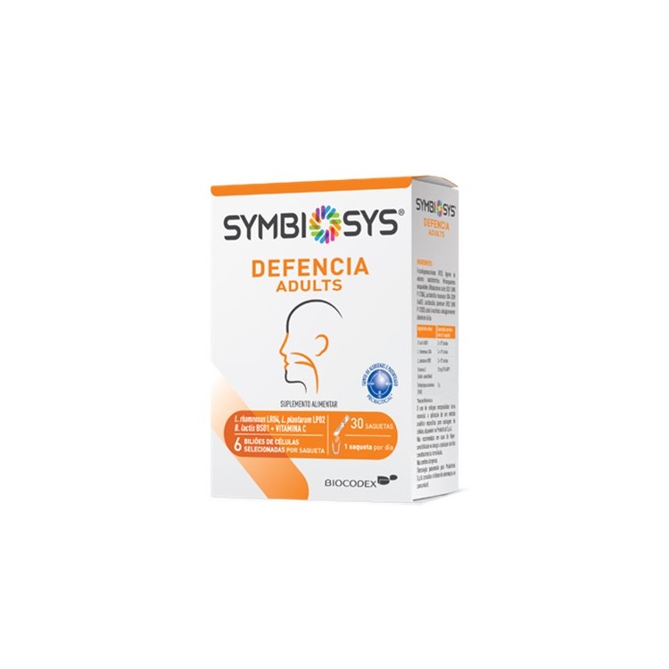 Symbiosys Defencia Adults é um suplemento alimentar que contém as estirpes de bactérias, Bifidobacterium lactis BS01, Lactobacillus rhamnosus LR04 e Lactobacillus plantarum LP02, e ainda Vitamina C que contribui para o normal funcionamento do sistema imunitário.